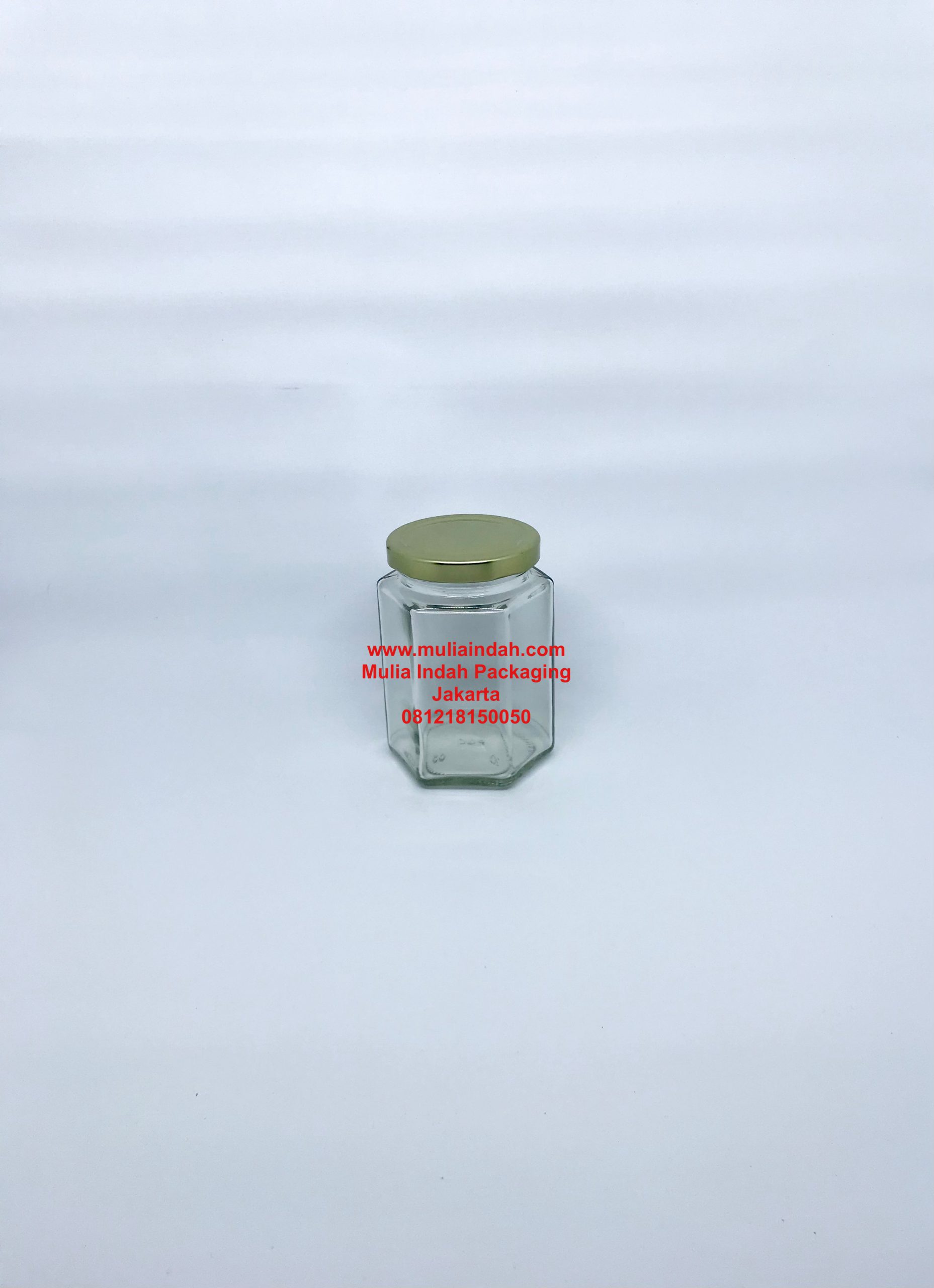 Botol Jar Hexagonal 300ml, Botol Selai, Toples Kaca, Toples Madu, Sambal, Sauce dengan Tutup Alumunium 63mm