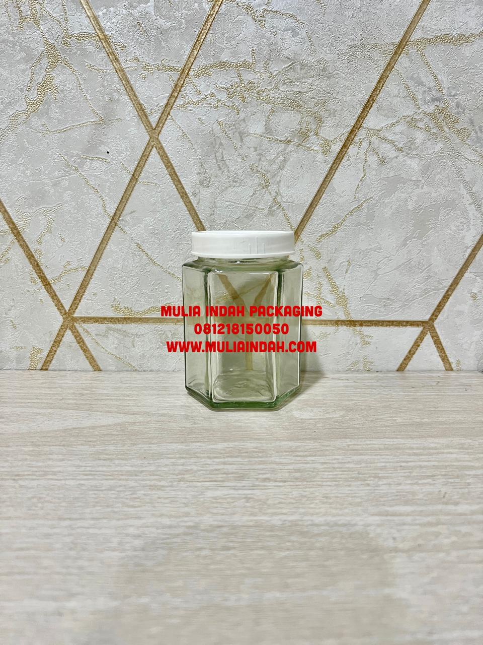 Botol Jar Hexagonal 300ml, Botol Selai, Toples Kaca, Toples Madu, Sambal, Sauce dengan Tutup Plastik 63mm